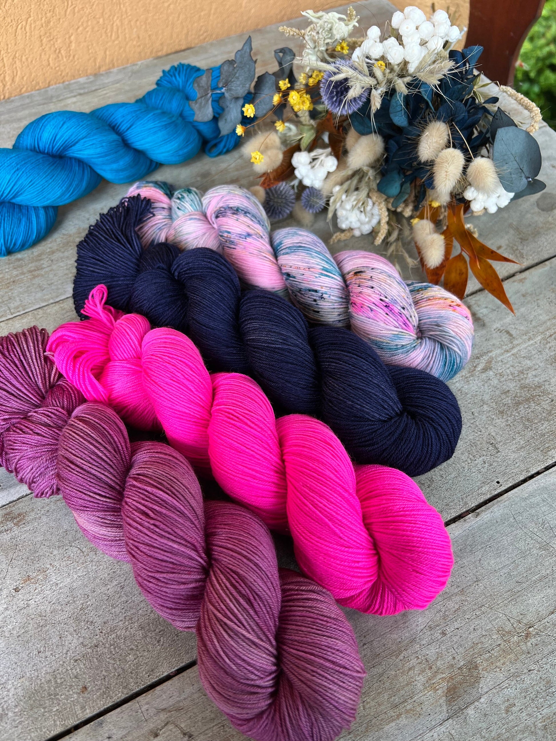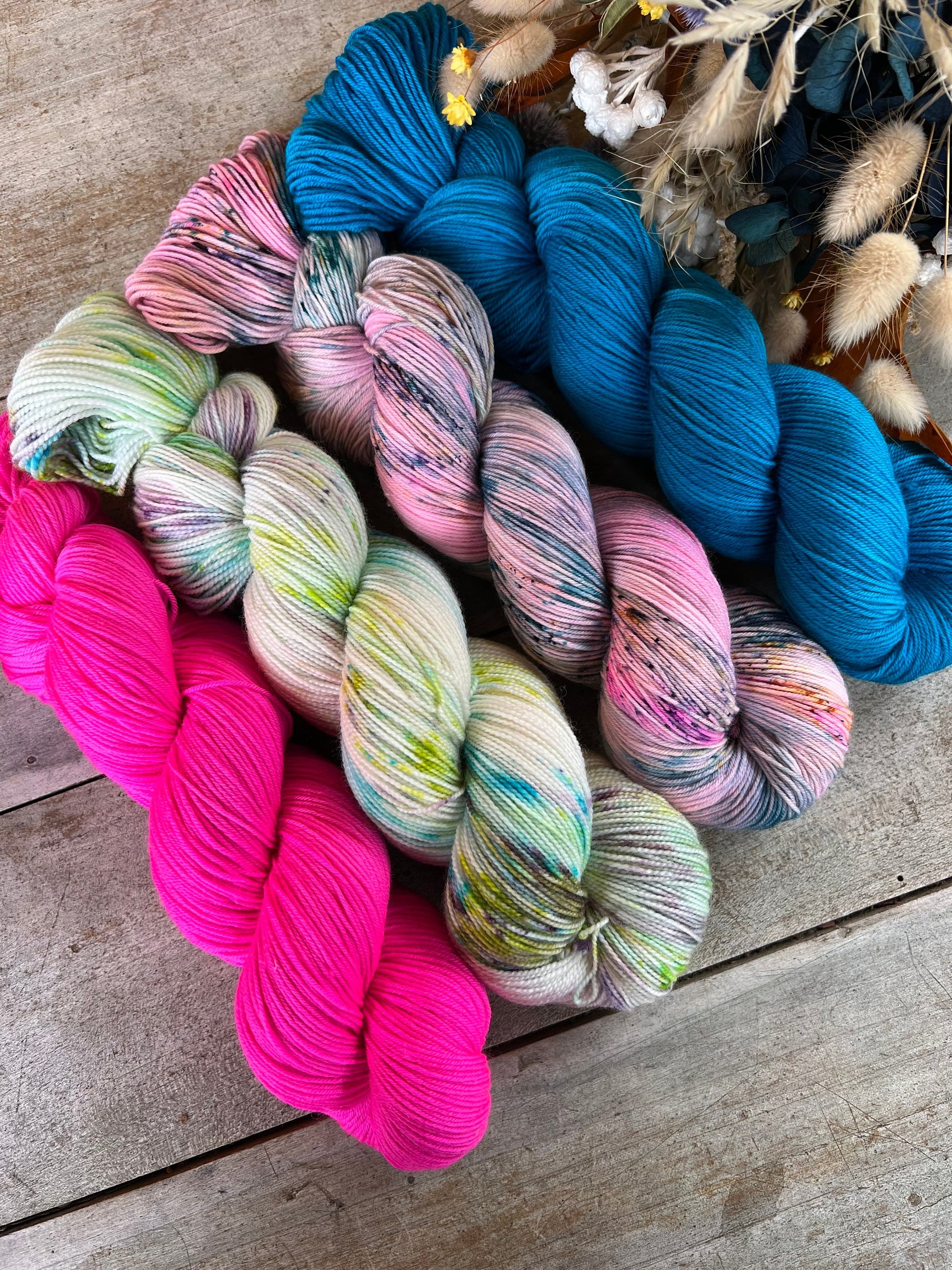 DAISY - Laine teinte à la main - Base au choix : Fingering Mérinos avec ou sans nylon / DK Mérinos / Kid Mohair et Soie