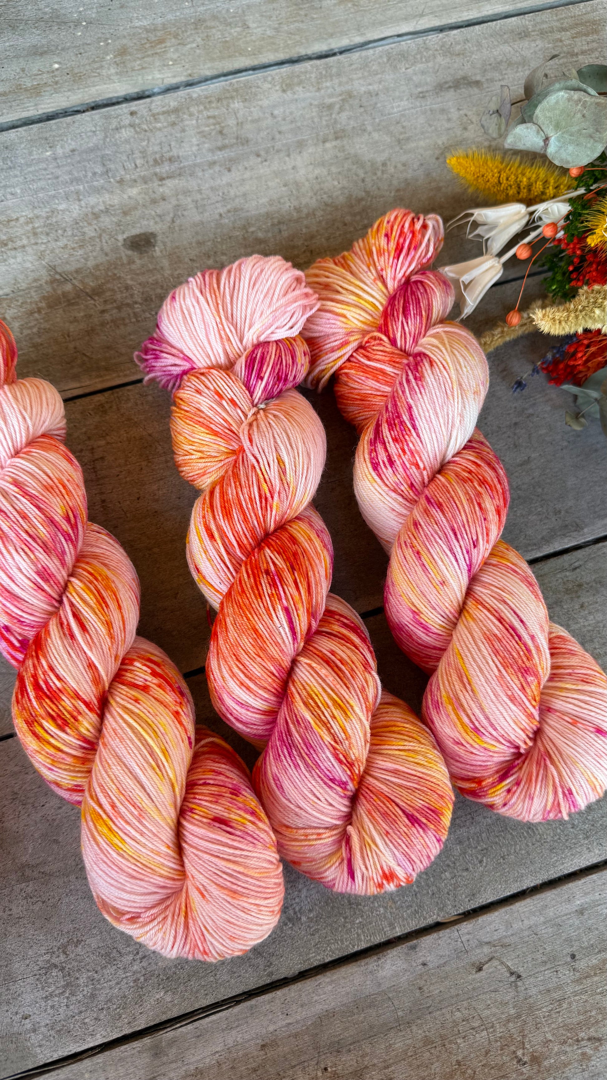 Chaque écheveau est unique car les couleurs se déposent de manière exclusive à chaque bain de teinture.