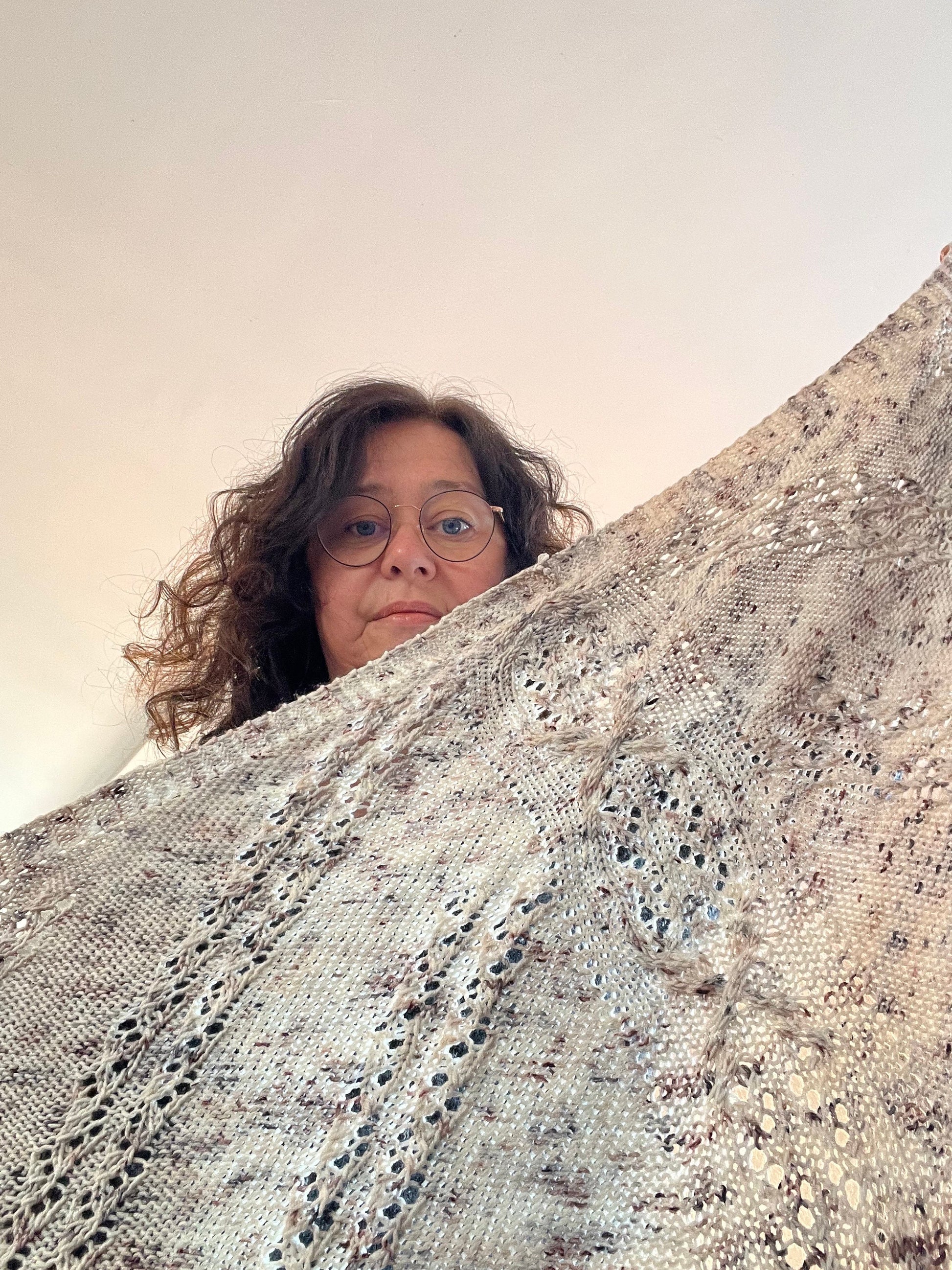 Je vous propose le patron du châle Myosotis, au format PDF.
