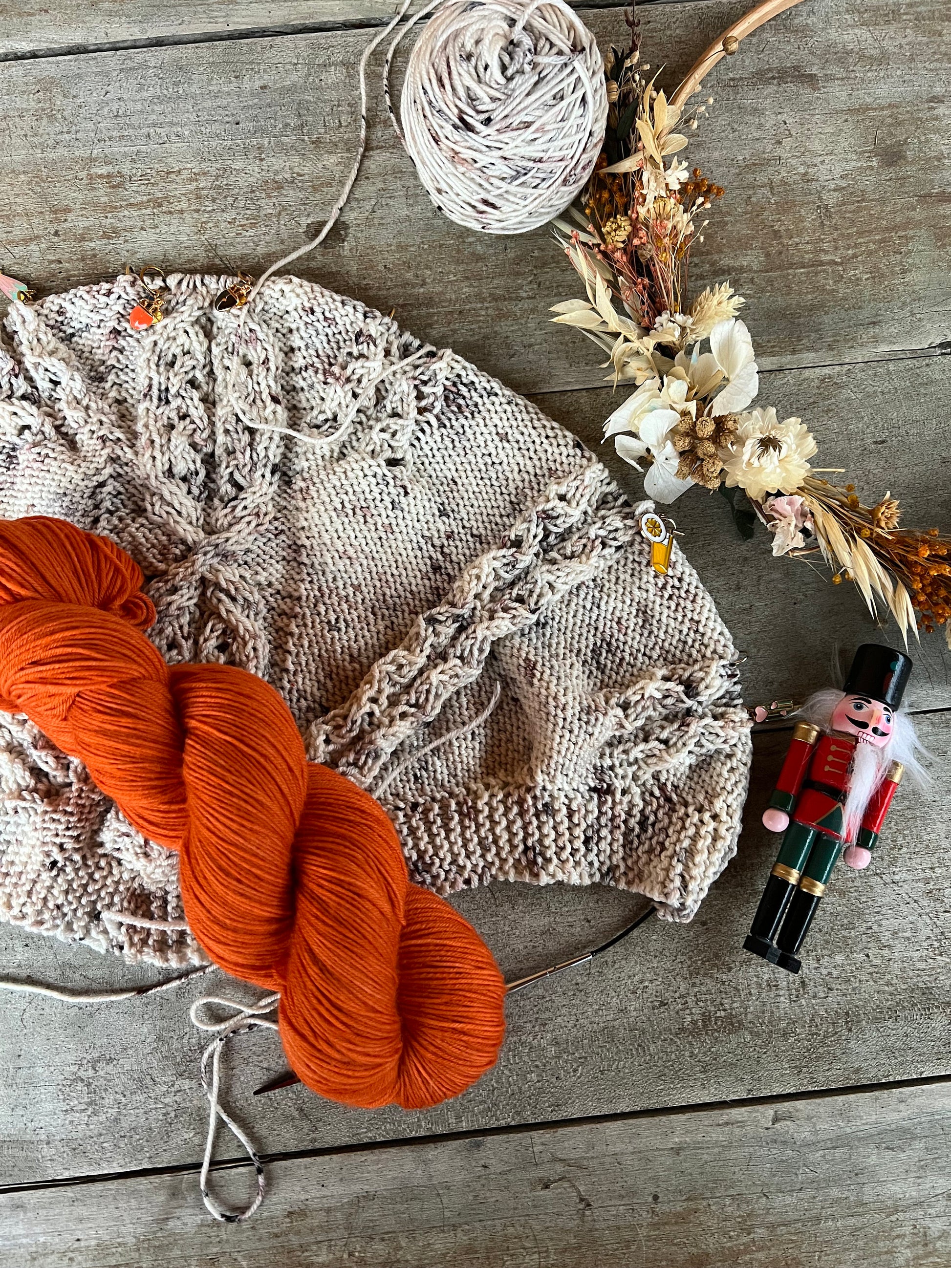 Vous pouvez utiliser toute autre laine DK vous permettant d’obtenir un échantillon de 10 X 10 cm pour environ 19 mailles sur 28 rangs, avec des aiguilles n° 4,5.