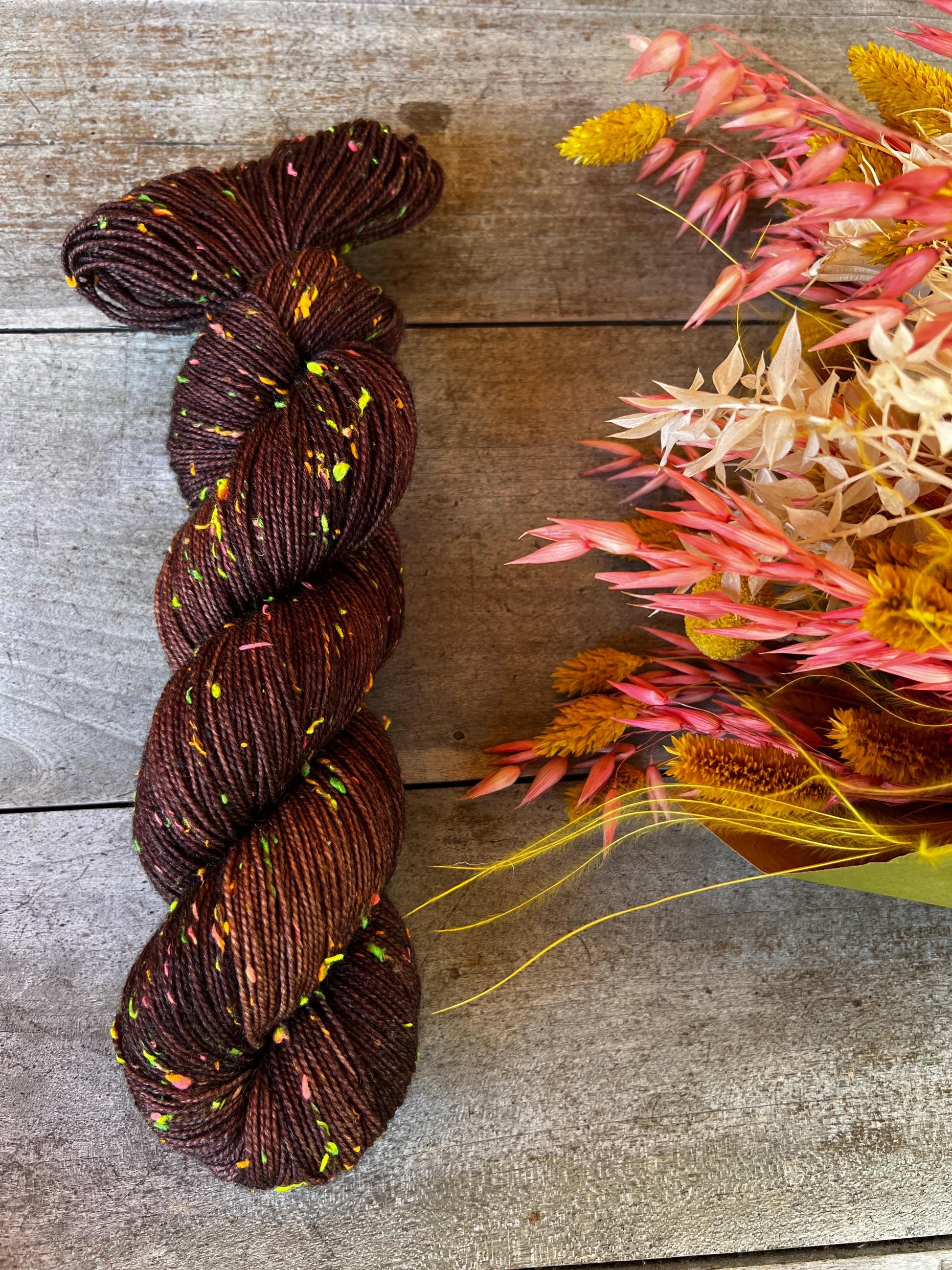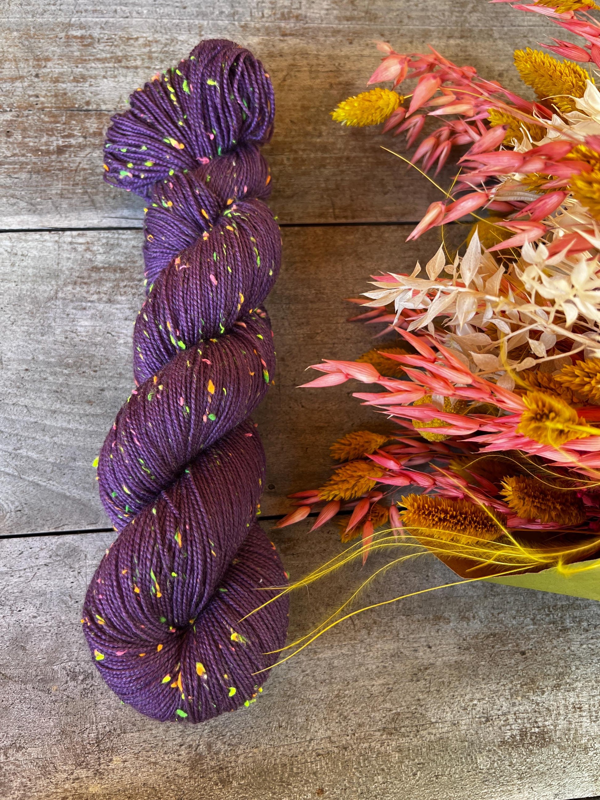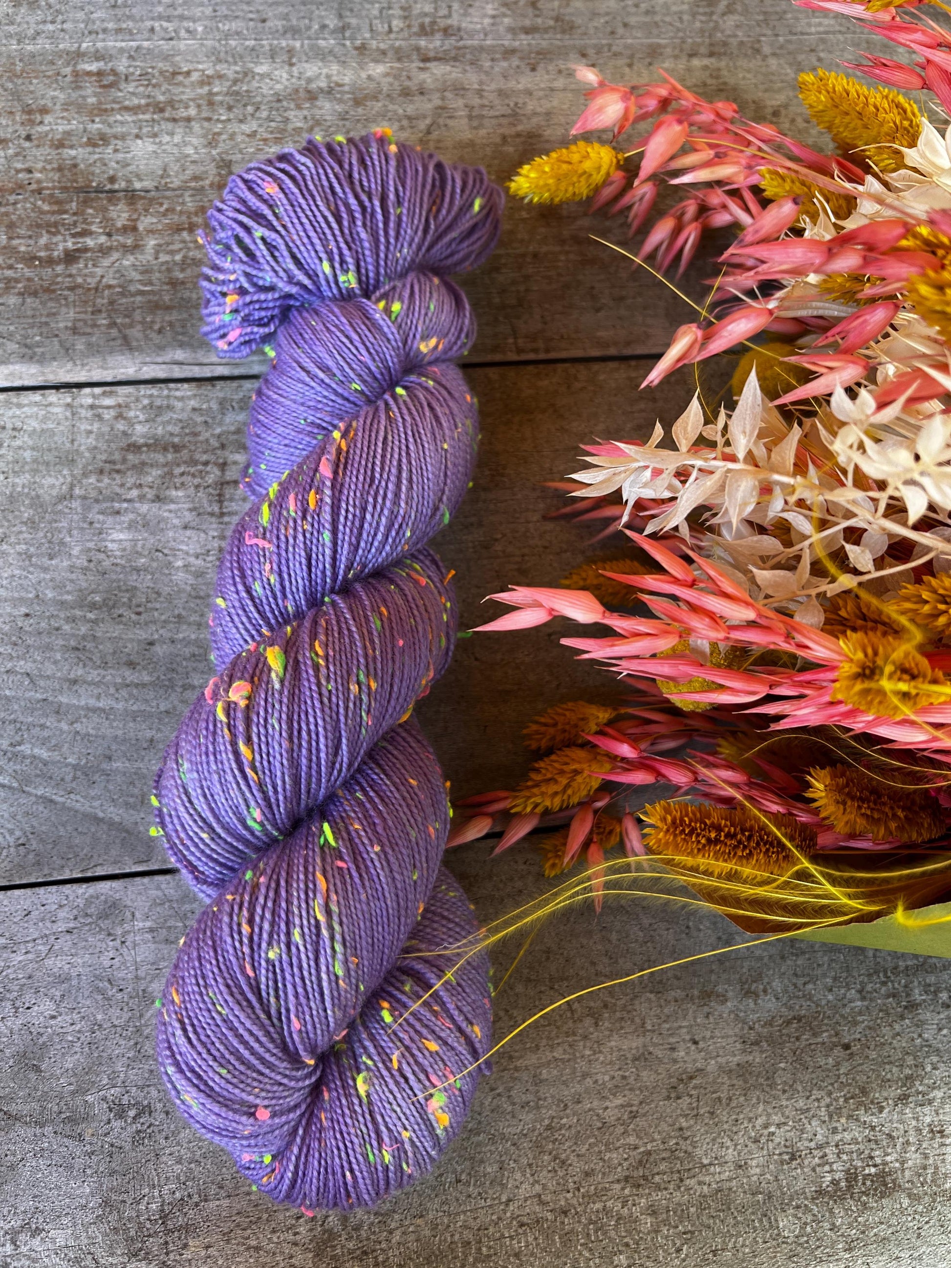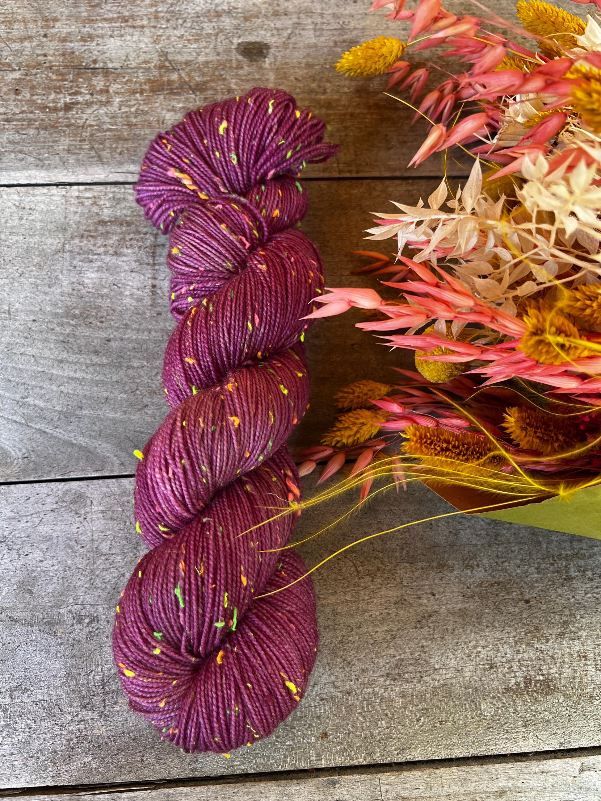Découvrez l'originalité de cette laine Fingering composée de 85% Mérinos Superwash 15% Neon Donegal , de 400 mètres pour 100 g.