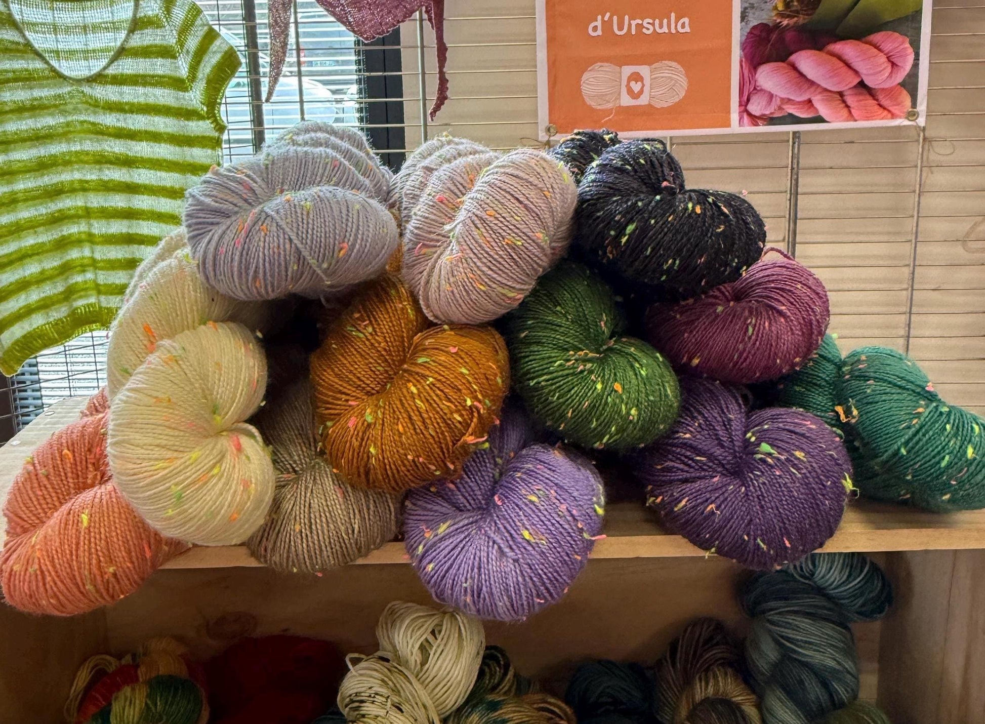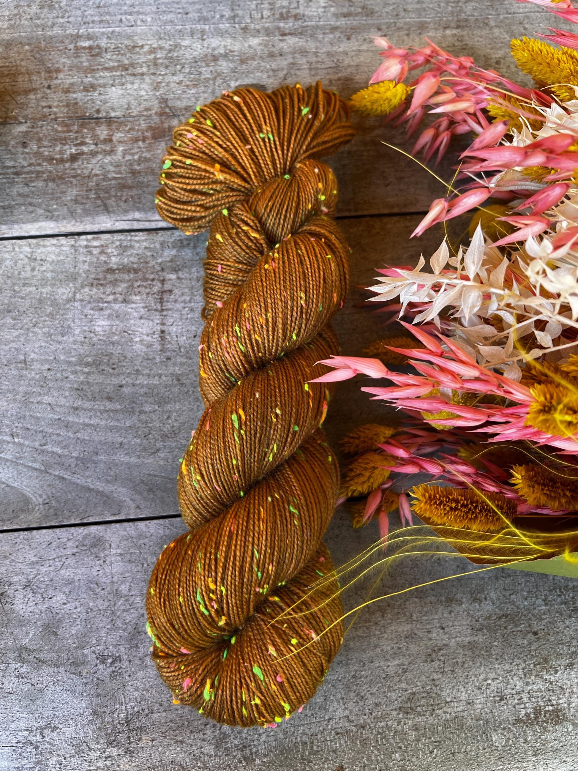 Le lumineux fil Néon Nep Donegal est un fil fingering en mérinos agrémenté de petits fils néon.