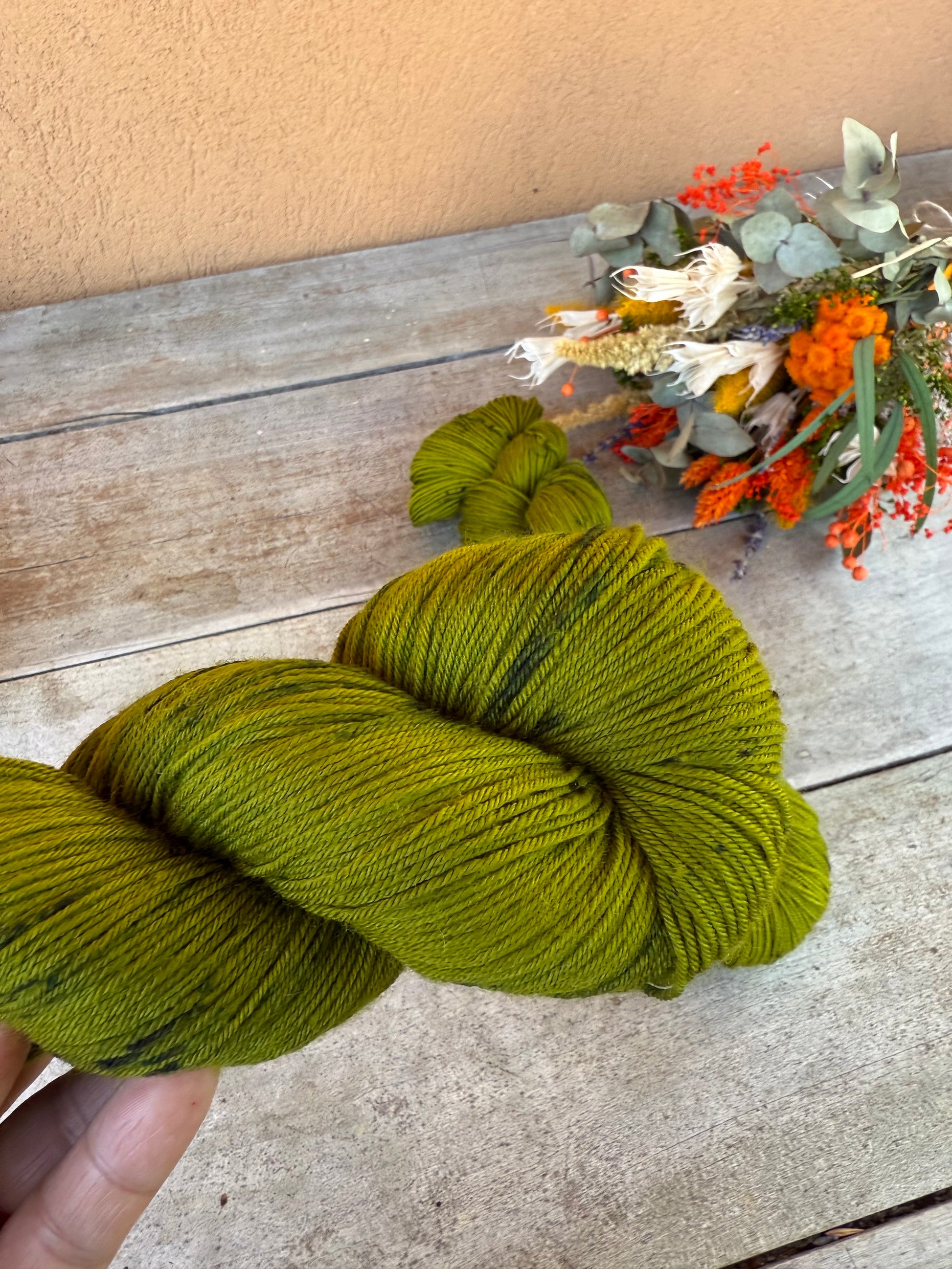 Mes écheveaux de laine sont teints à la main en petites séries artisanales dans mon atelier en Alsace.