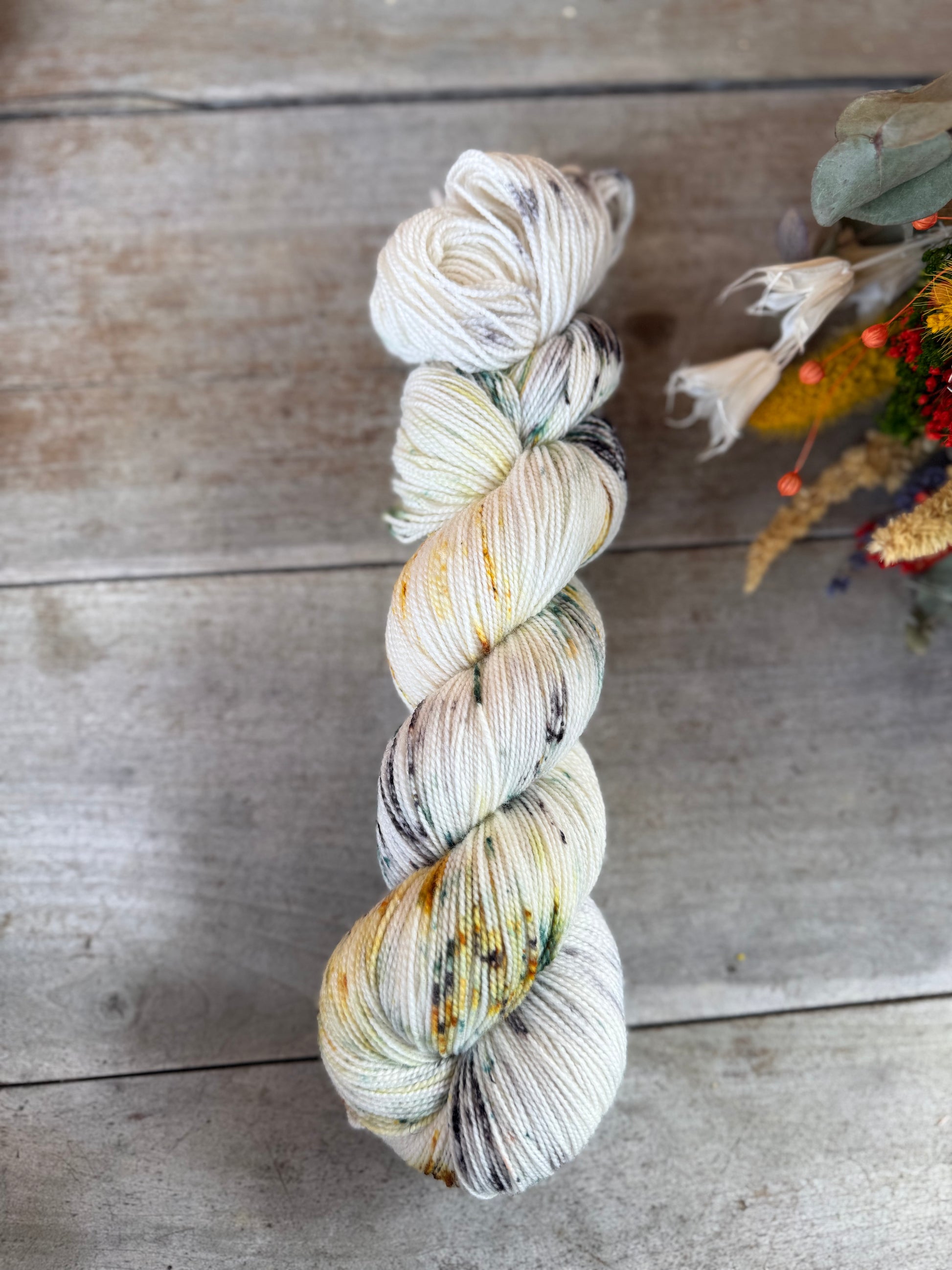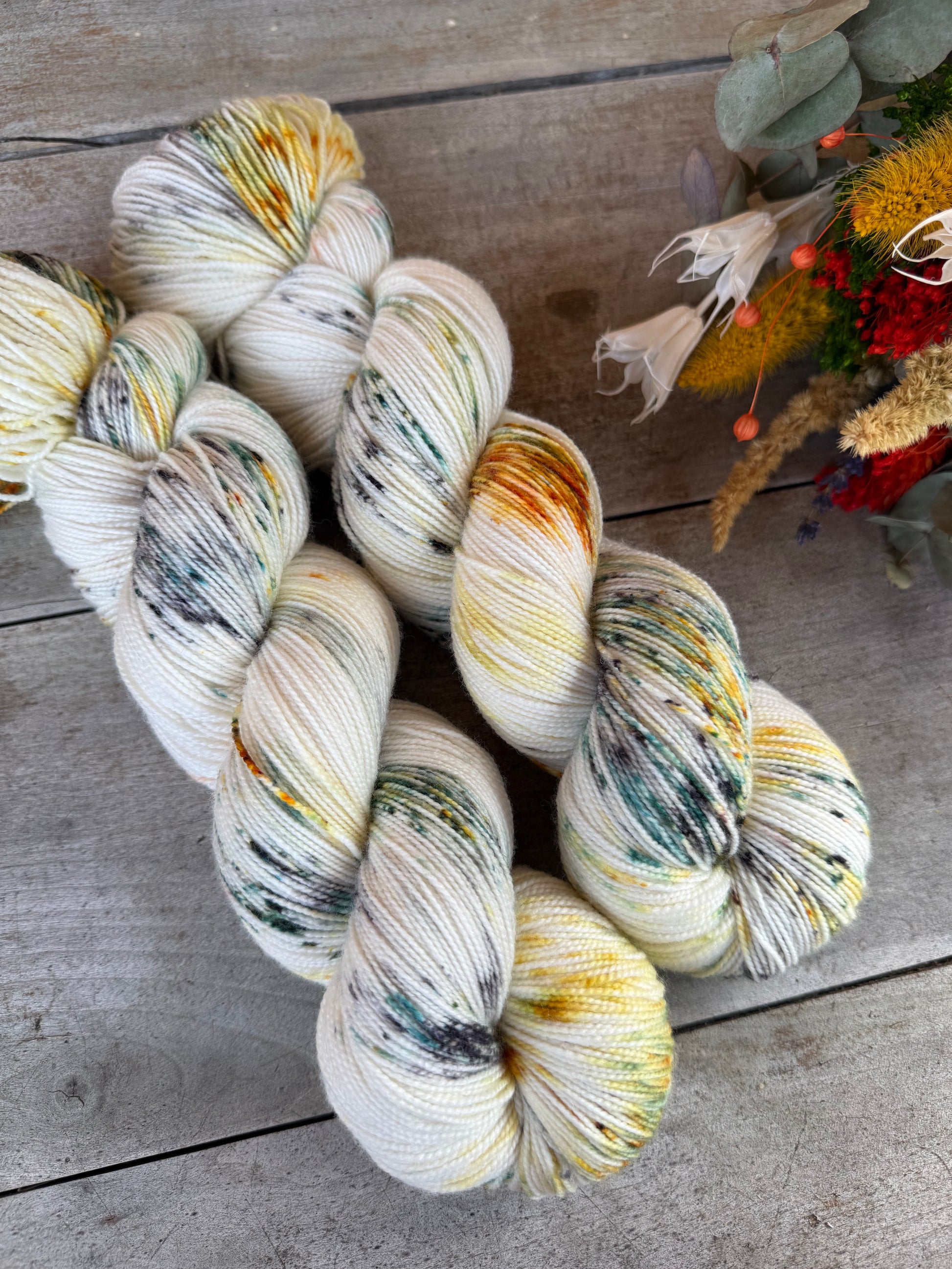 2. Fingering 75% Mérinos superwash, 25% Nylon, 425 mètres pour 100g, aiguilles recommandées: 2.5 - 4 mm