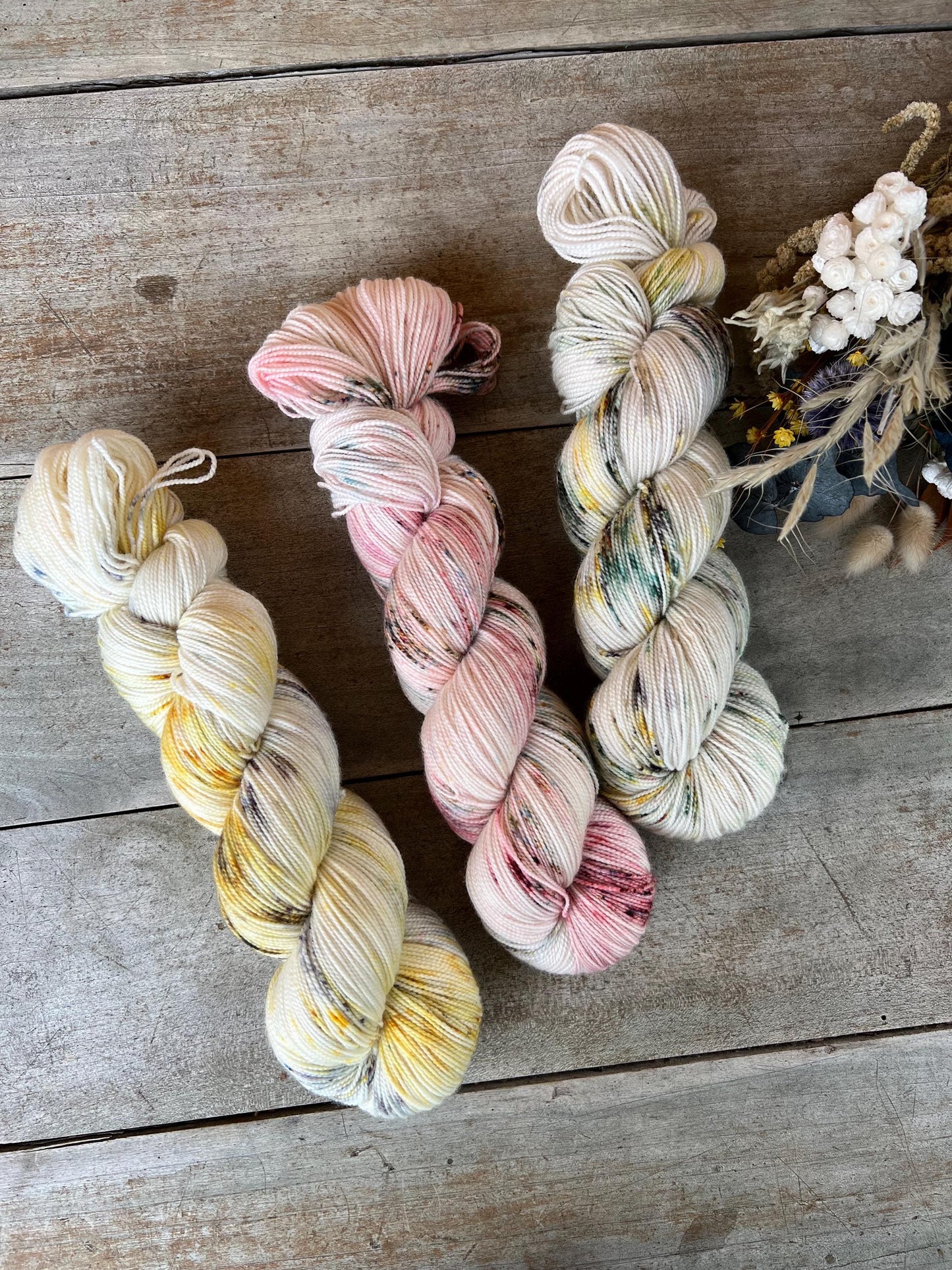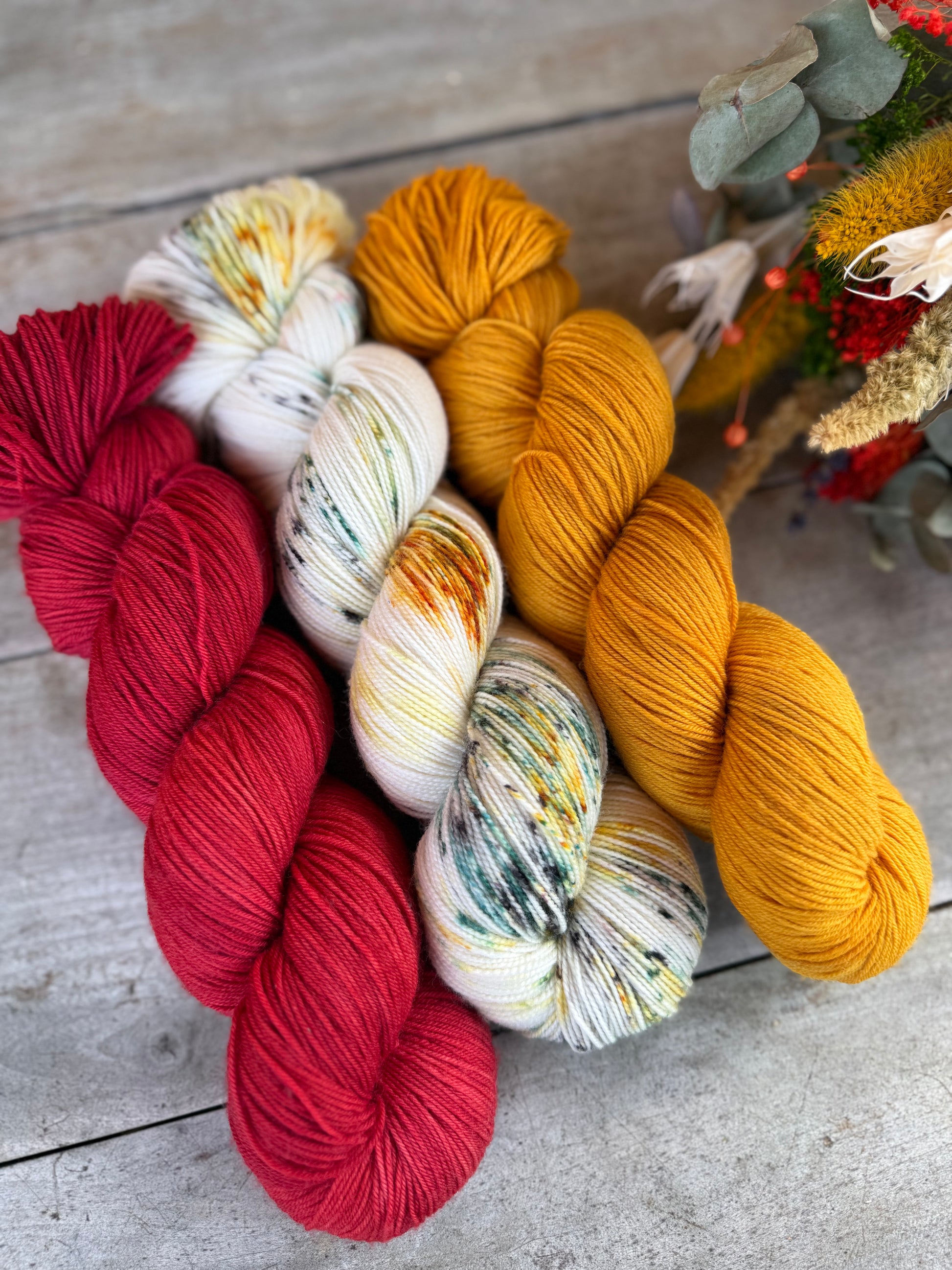 Mes écheveaux de laine sont teints à la main par petites séries artisanalement dans mon atelier situé en Alsace. Chacun d'eux est unique car à chaque bain de teinture, les couleurs s'y apposent de manière exclusive.