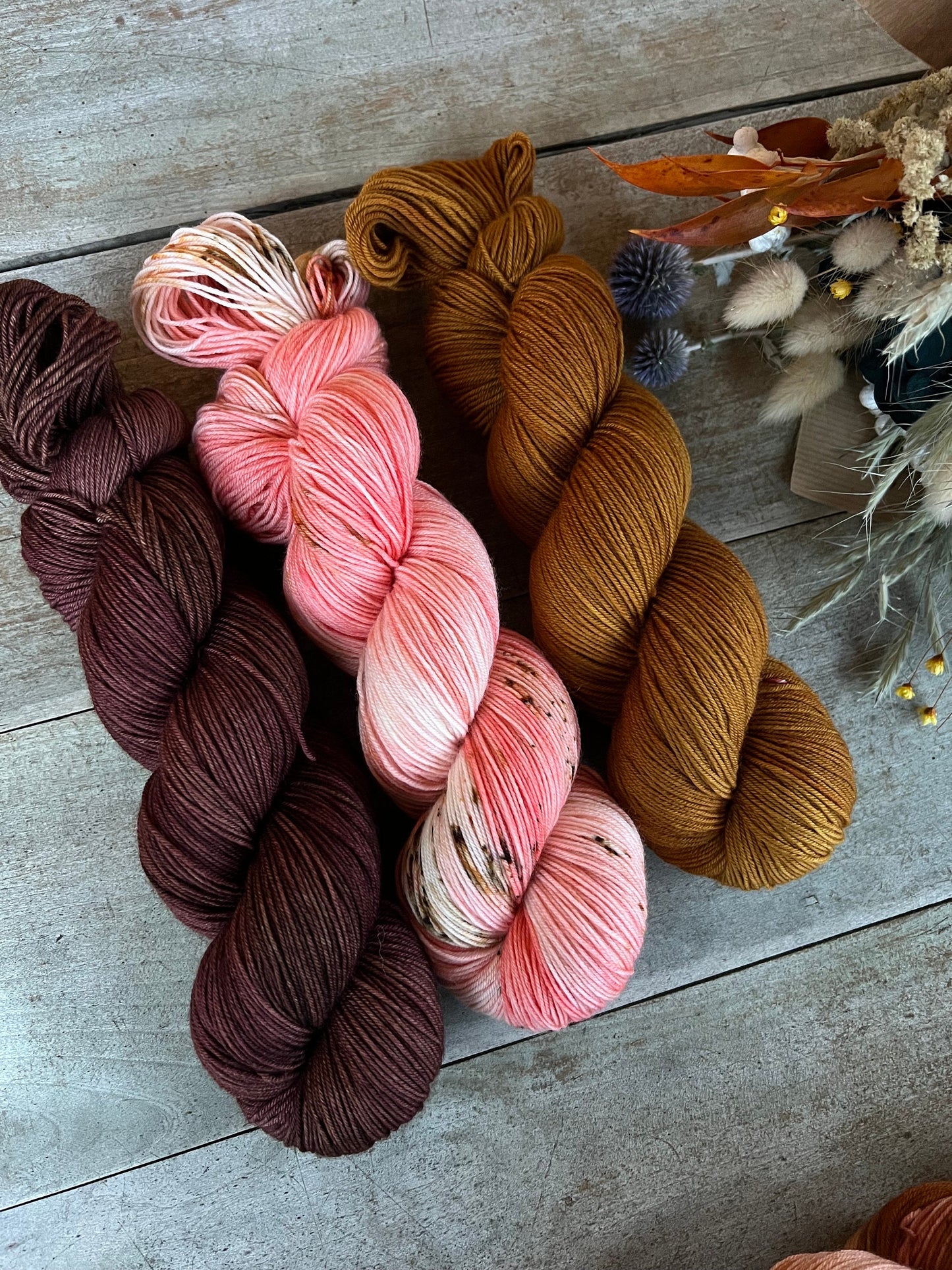 PEACH - Laine teinte à la main - Base au choix : Fingering Mérinos avec ou sans nylon / DK Mérinos / Kid Mohair et Soie