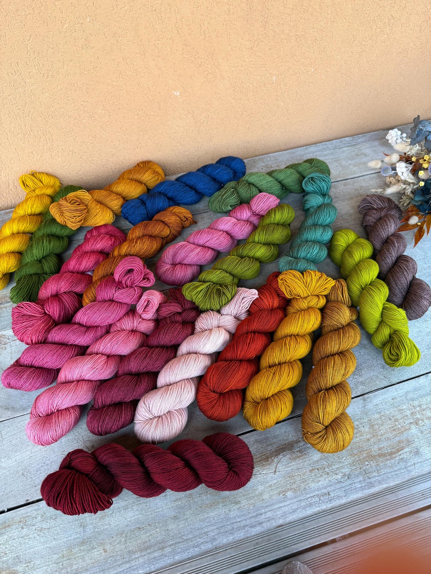 JASMINE - Laine teinte à la main - Base au choix : Fingering Mérinos avec ou sans nylon / DK Mérinos / Kid Mohair et Soie