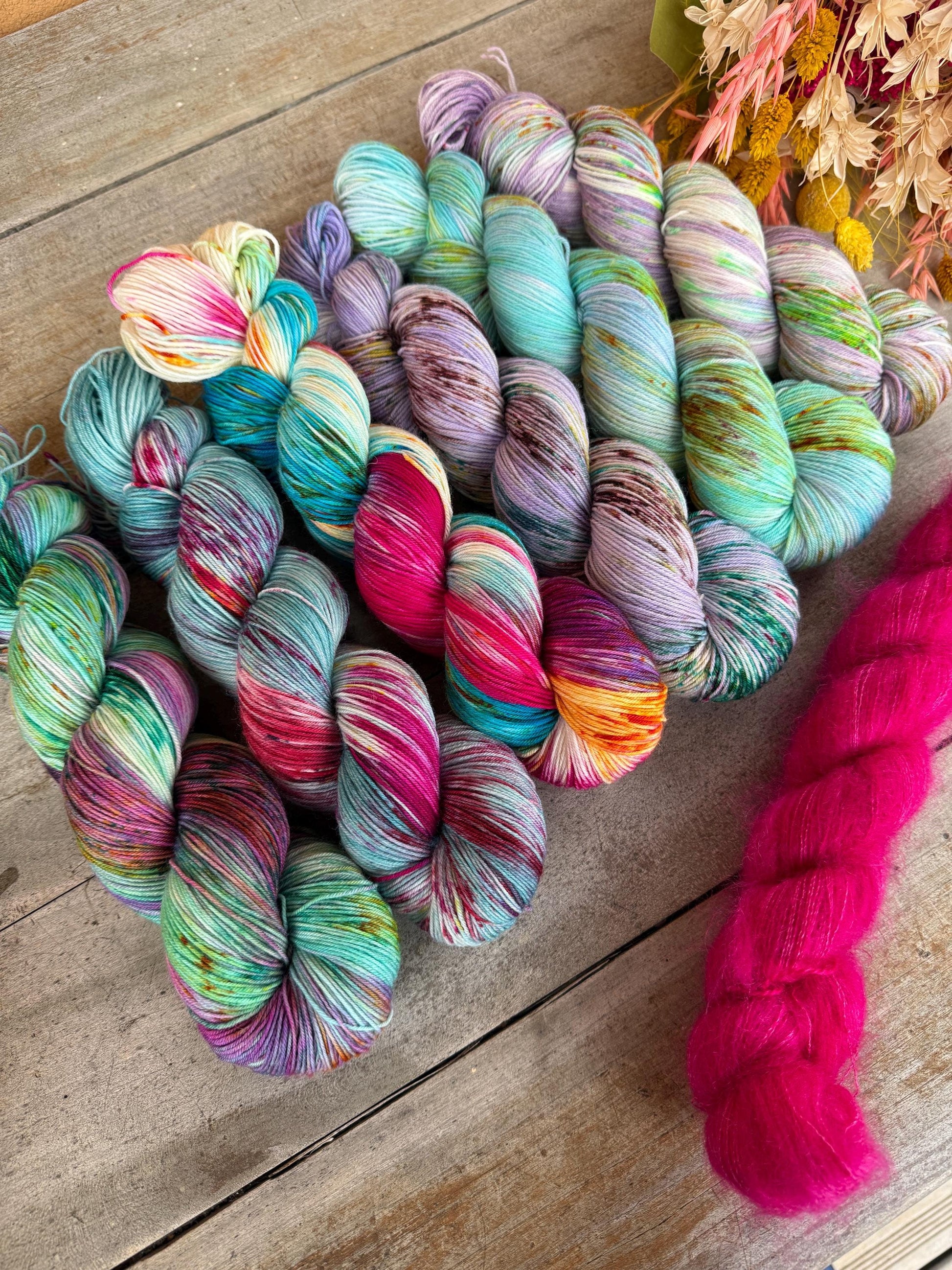 Mes écheveaux de laine sont teints à la main en petites séries artisanales dans mon atelier en Alsace.