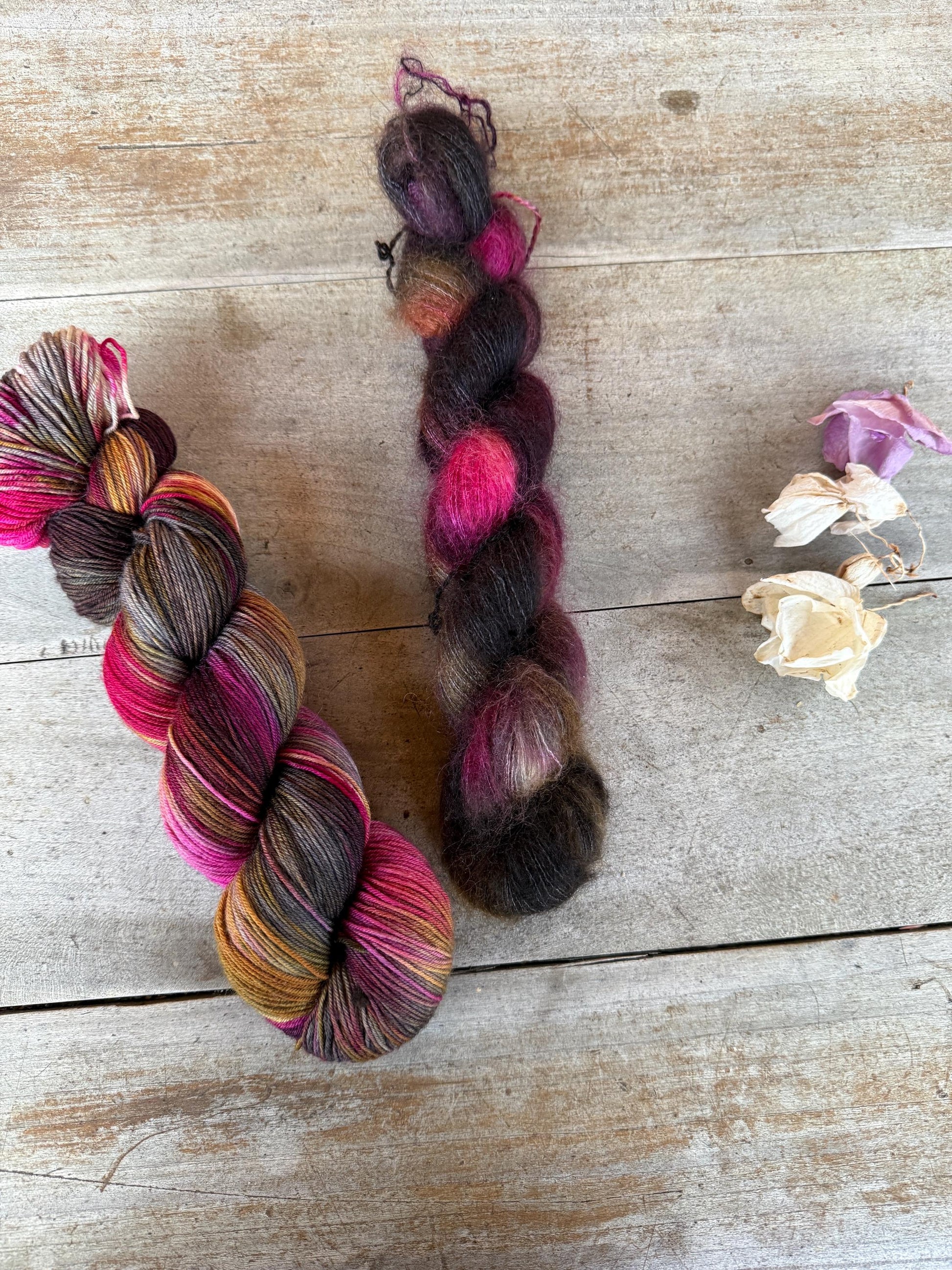 Chaque écheveau est unique car les couleurs se déposent de manière exclusive à chaque bain de teinture.