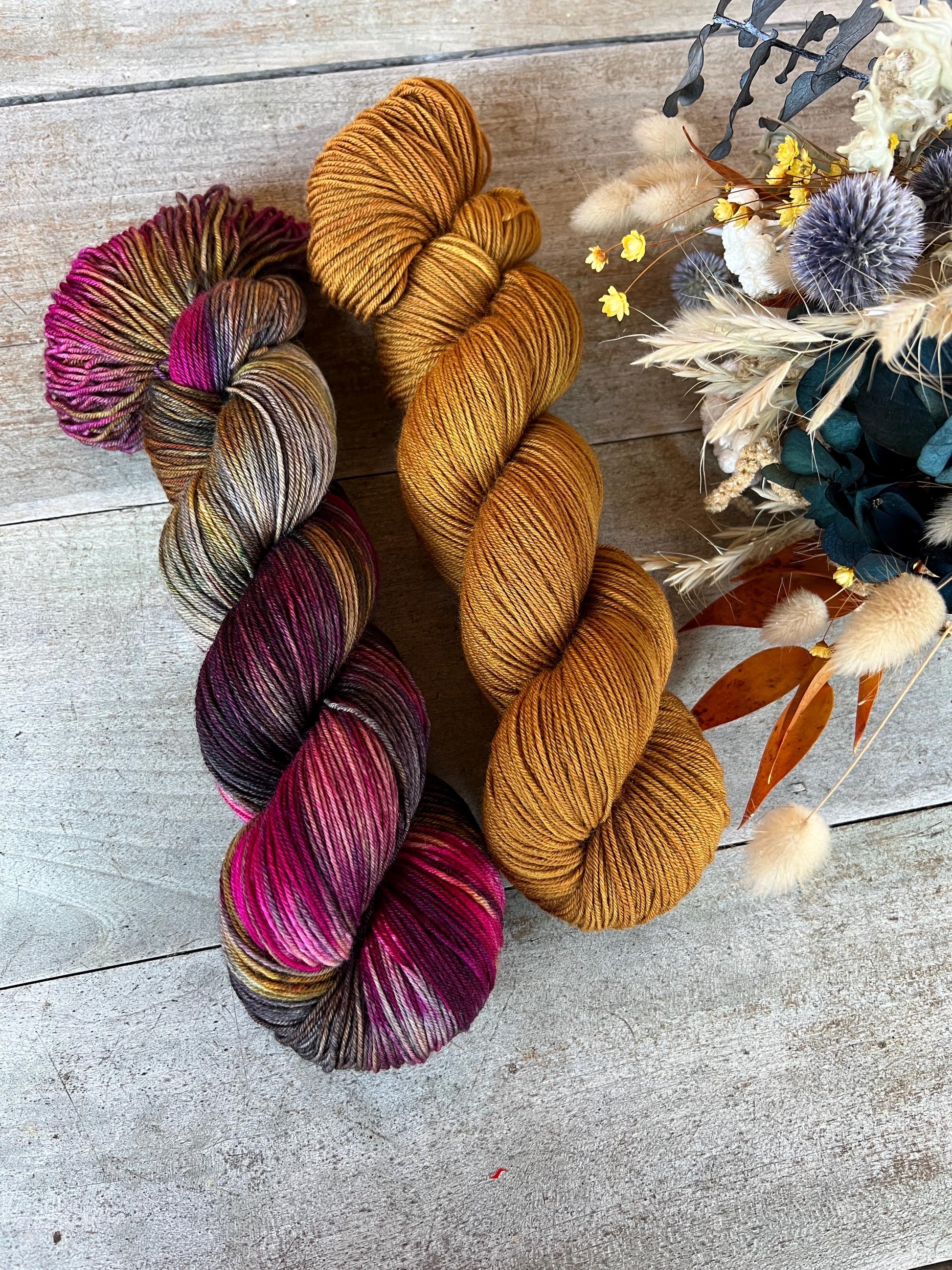 Mes écheveaux de laine sont teints à la main en petites séries artisanales dans mon atelier en Alsace.