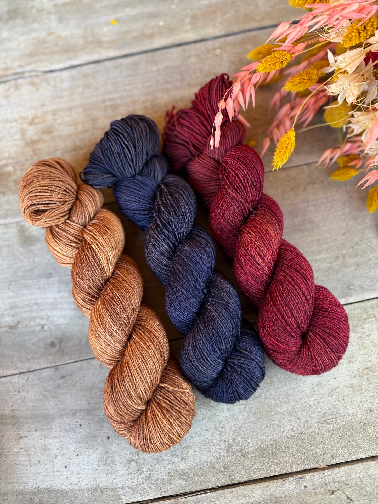 Les couleurs peuvent varier d'un bain à l'autre. Chaque écheveau est unique et différent des autres, même venant d'un même bain.
